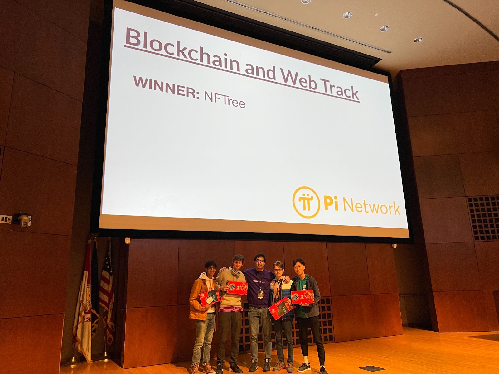 The NFTree team receiving their award from Core Team member Swaroop Poudel (center) at Cornell University.